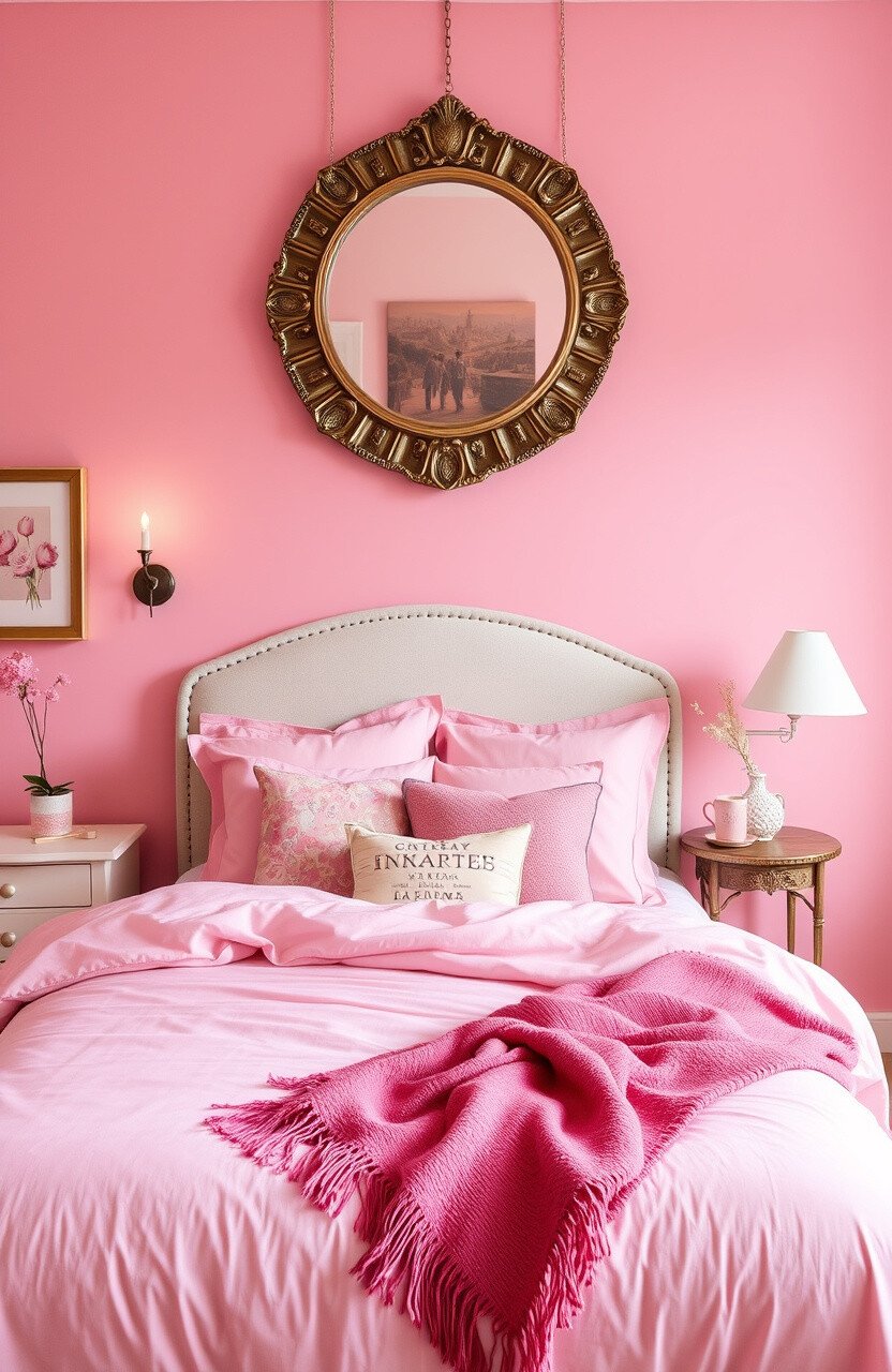 A pink accent wall can be a bold statement in your room. It’s a creative way to add color without overwhelming the space.