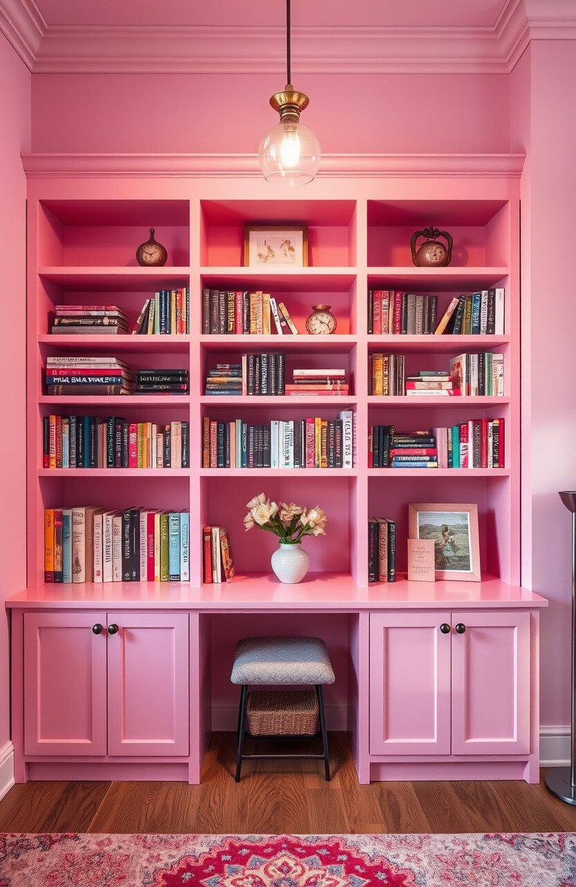 Bookshelves painted in pink can become a focal point. They add a splash of color and are perfect for displaying your favorite reads and treasures.