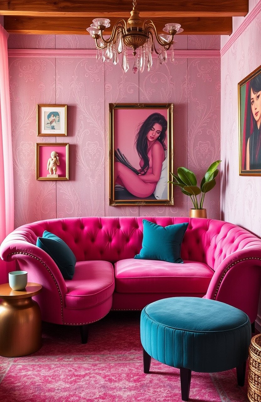 A pink velvet chair or sofa is not just stylish but also comfortable for lounging. It’s a great way to add texture and depth to your decor.