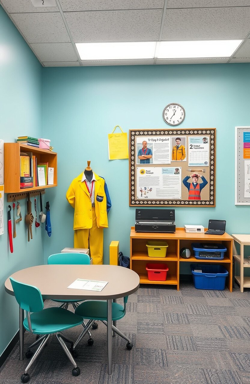 A space dedicated to careers can inspire future aspirations. Displays of different professions and tools can fill the area.