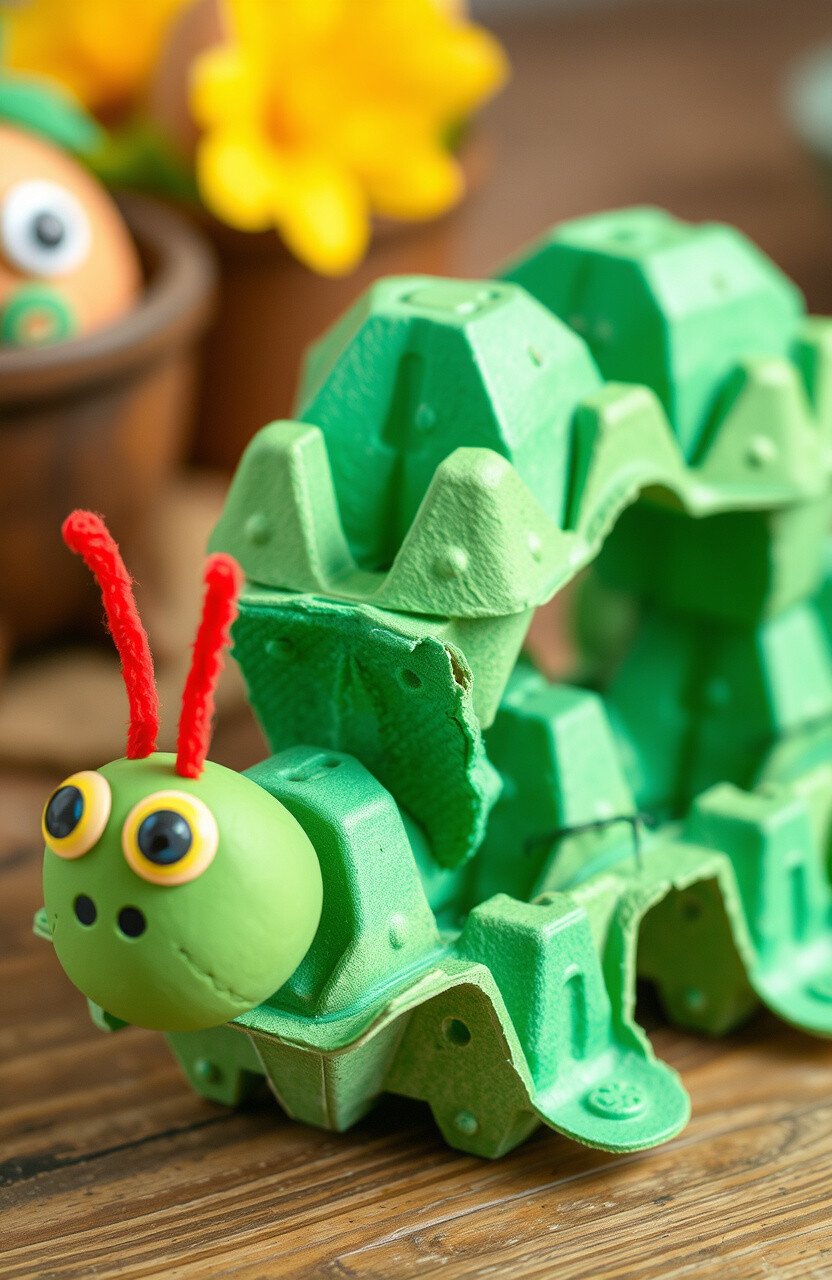Repurpose egg cartons into creative crafts like caterpillars or flowers. This activity promotes recycling and artistic expression.