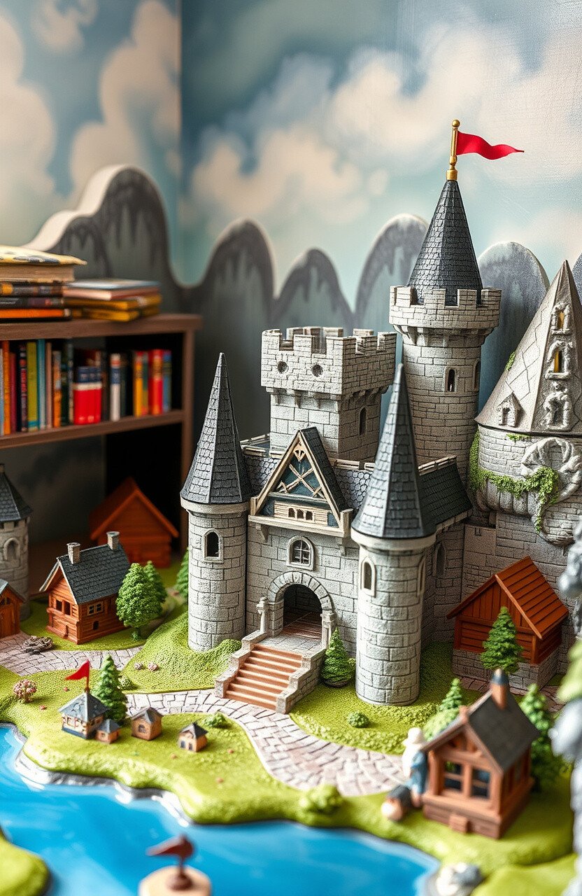 Find affordable models and books online or at thrift stores. Personalize with a castle journal or story wall.