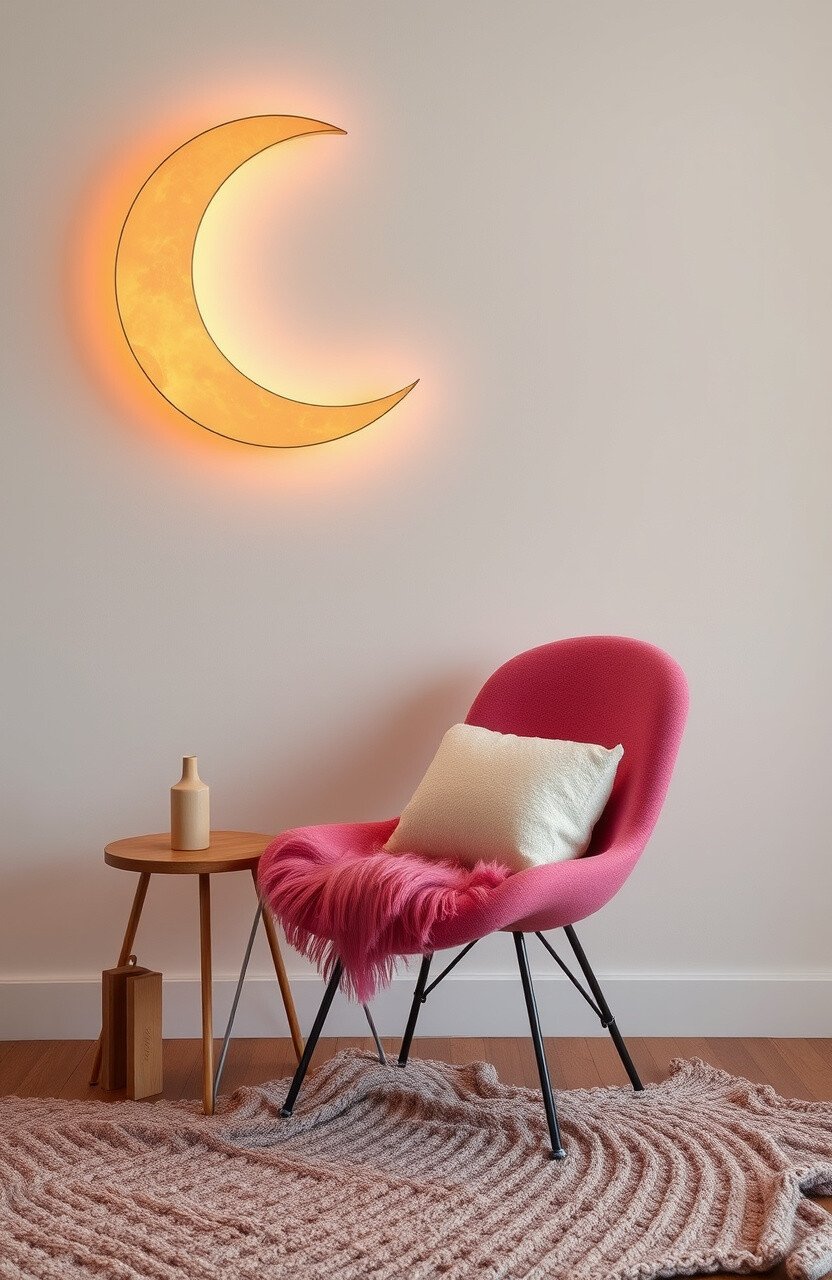 A crescent moon-shaped lamp or wall art can create a dreamy, magical atmosphere. Crescents are unique for their celestial charm.