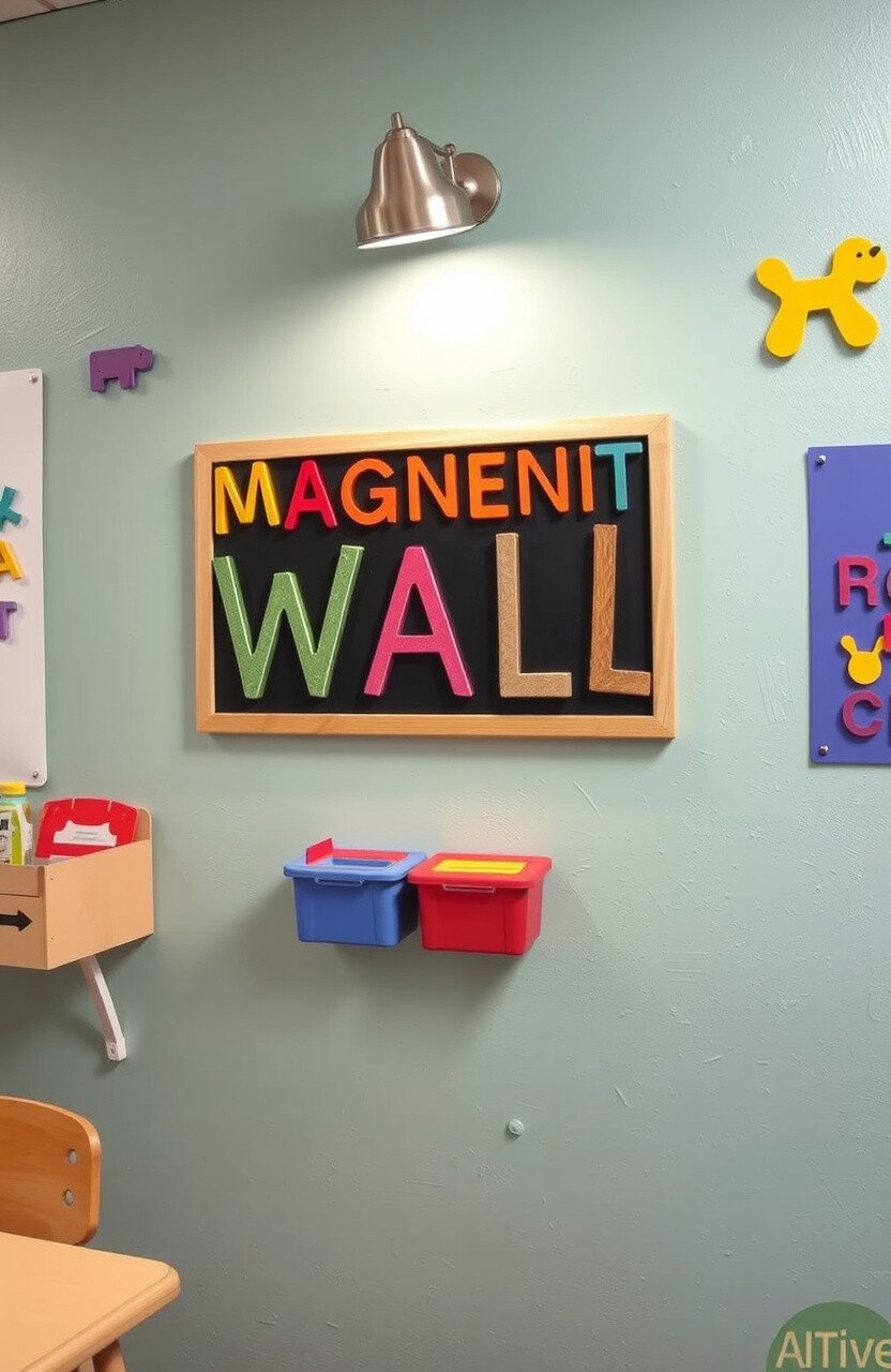 Magnetic paint is available at most hardware stores. It’s a clever way to add an interactive element to the classroom.