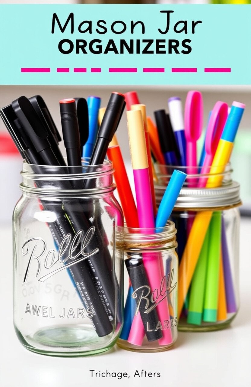 Line them up on shelves or desks for easy access. Personalize with paint or labels. This trend is popular for its DIY appeal and versatility. Mason jars are budget-friendly and available in most stores.