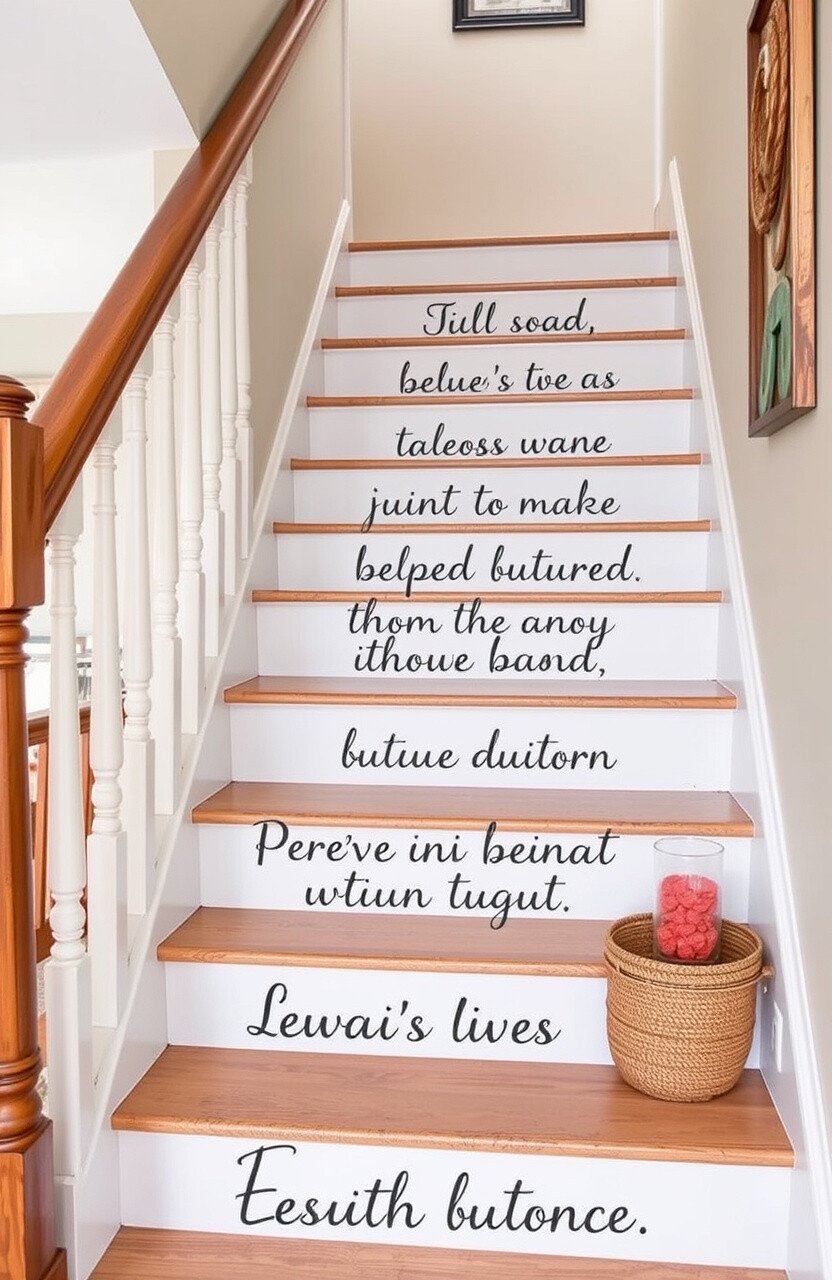 Painting quotes on your stairs adds a personal and inspirational touch. It’s like walking on words of wisdom every day.
