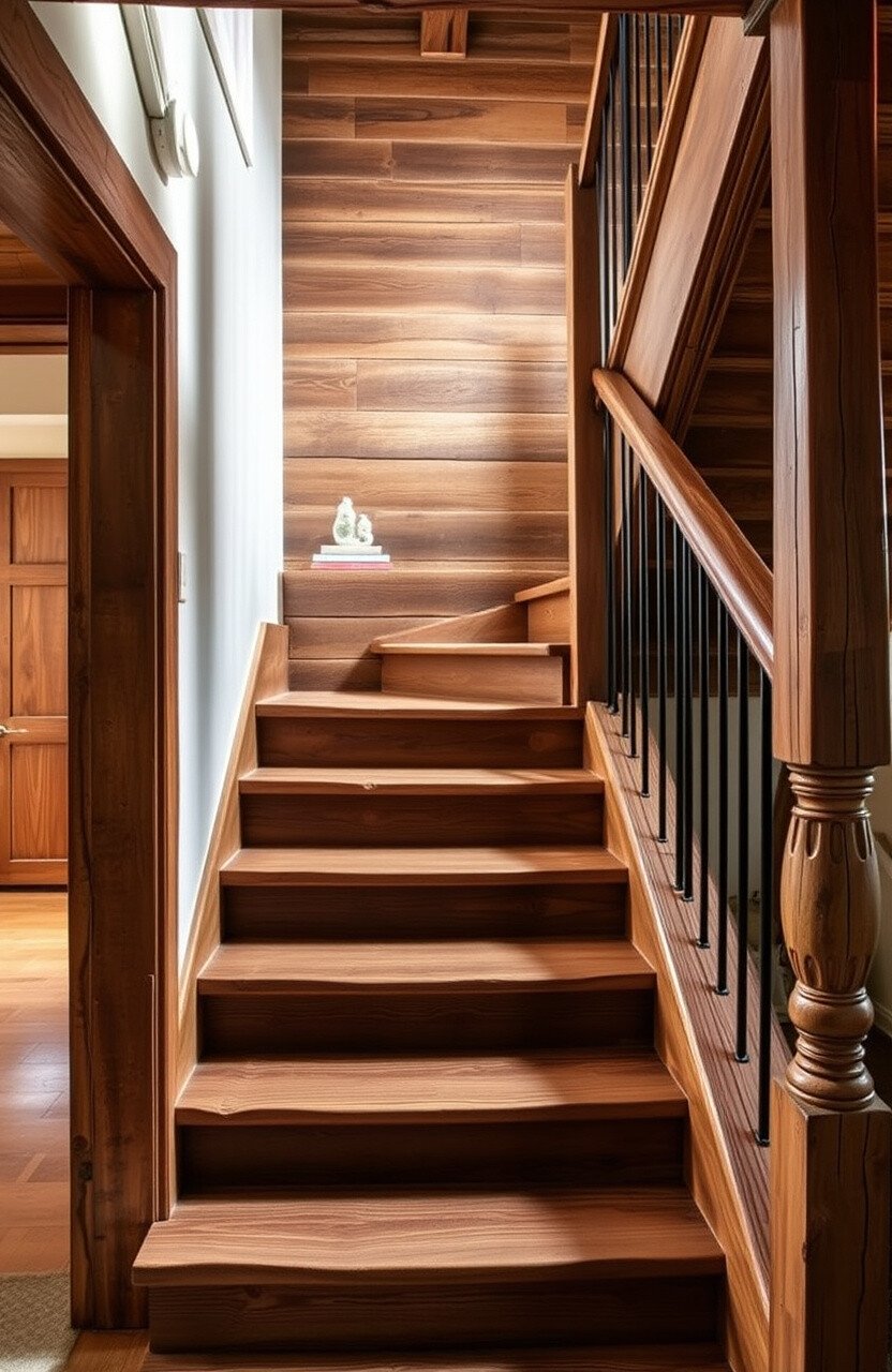 Consider using reclaimed wood for a more eco-friendly option. The aged look adds character and history to your staircase.