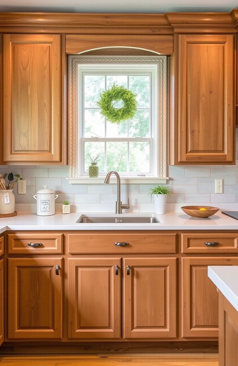 Adding wooden accents to your cabinets can create a rustic look. It’s a charming way to bring warmth to your kitchen.