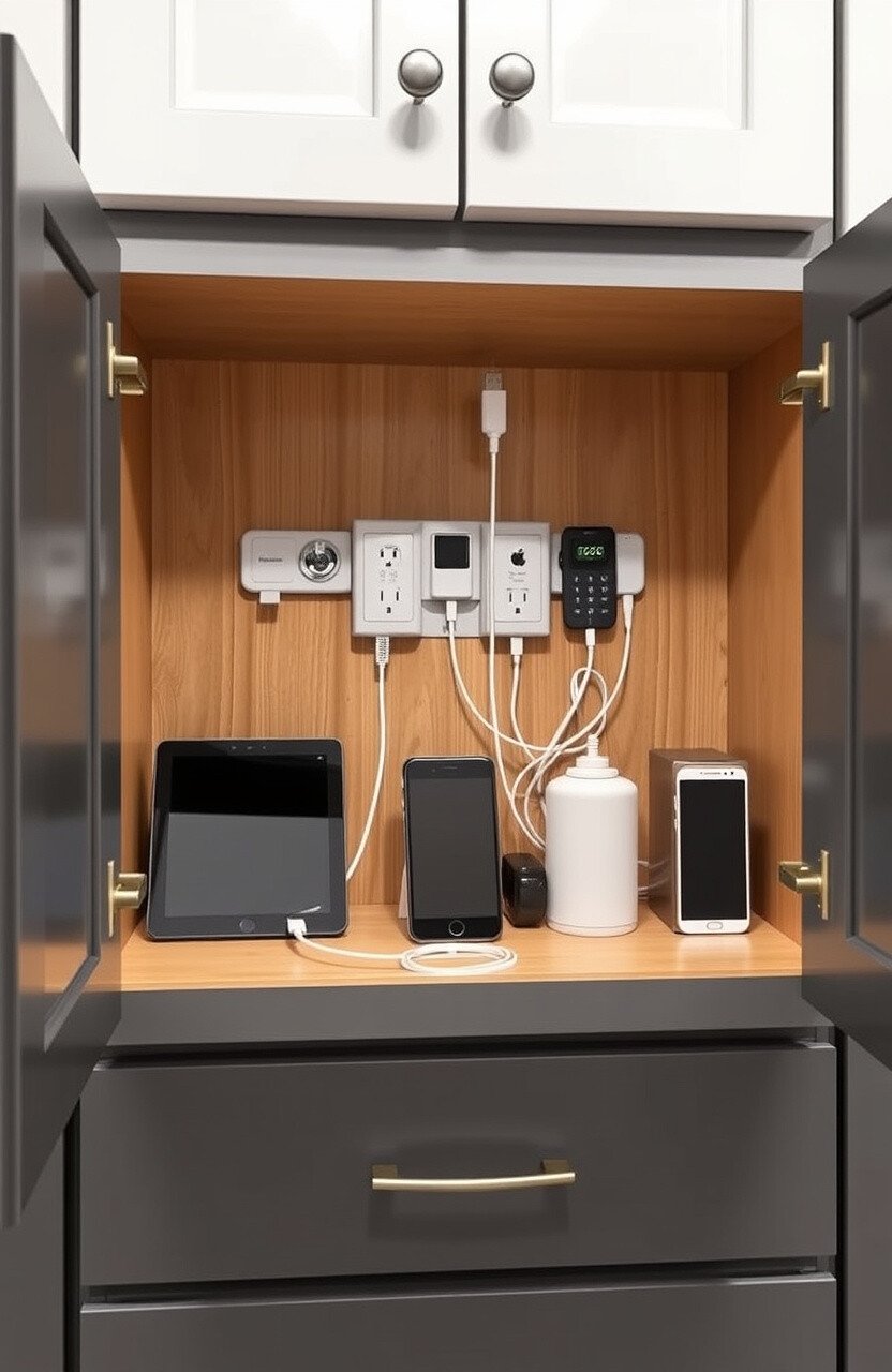Creating a hidden charging station inside a cabinet keeps your gadgets organized. It’s a neat way to reduce countertop clutter.