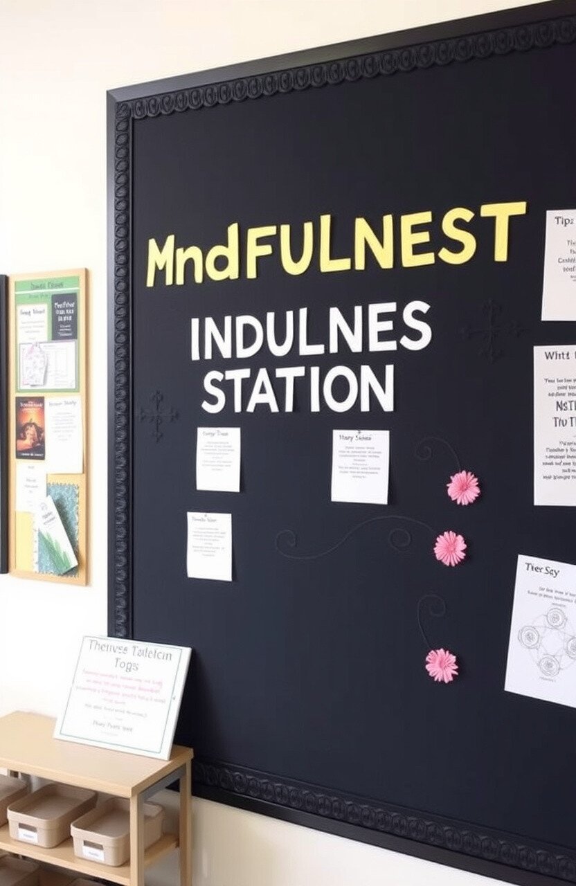 Imagine a bulletin board that promotes mindfulness and relaxation, featuring tips and techniques. It’s a sanctuary of calm.