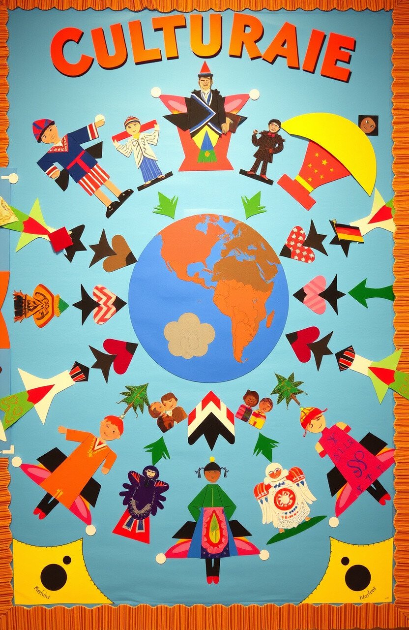 Imagine a bulletin board that celebrates cultural diversity, featuring festivals and traditions from around the world. It’s a cultural feast.
