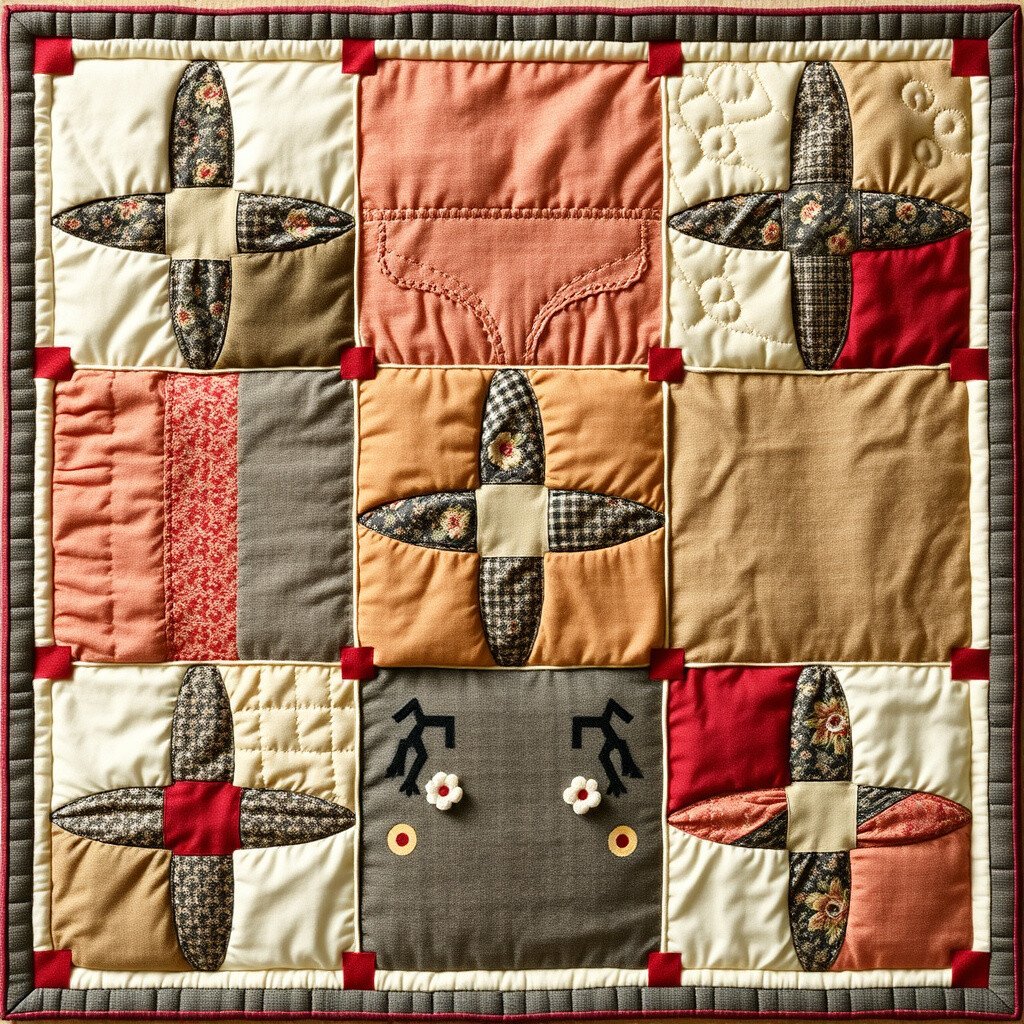 Personalize it by incorporating fabric from old clothing, giving it a nostalgic touch. It’s a simple yet versatile choice for any quilt.