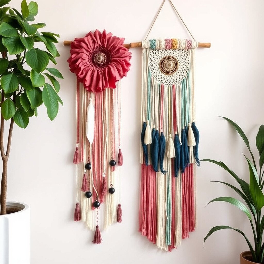 These hangings are perfect for adding texture and color to a room. Use fabrics with different patterns or embellishments like beads or feathers for added interest.