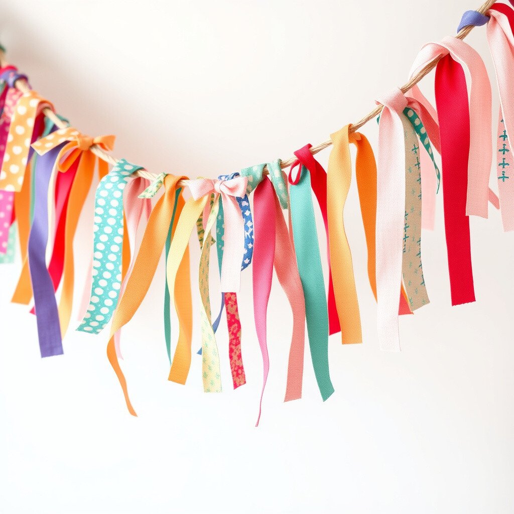 Create whimsical garlands from fabric scraps to decorate for parties or holidays. Simply tie strips of fabric onto a long piece of string or twine.