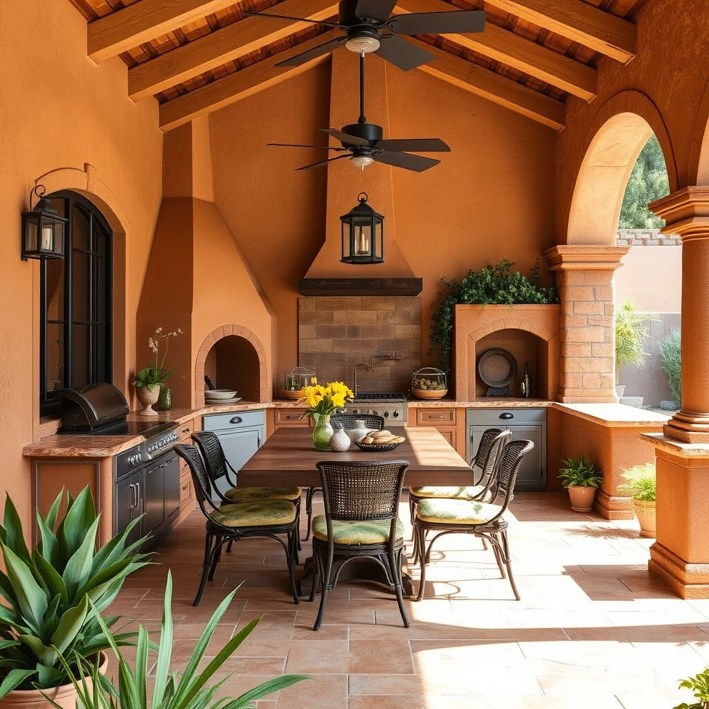 Add a wood-fired pizza oven for an authentic touch. It’s like dining in a Spanish villa.