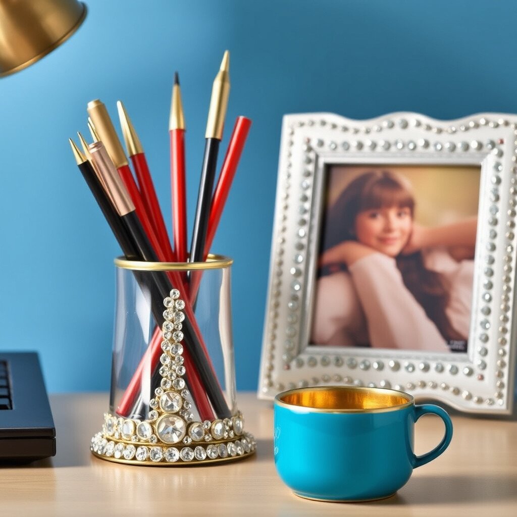 Brighten your workspace with rhinestone-studded desk accessories. They can turn a dull desk into a creative haven.
