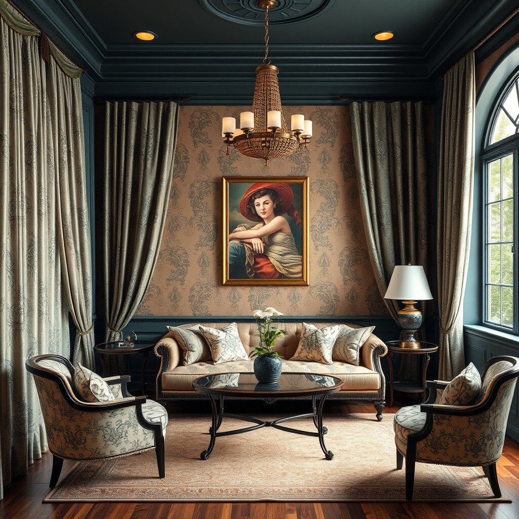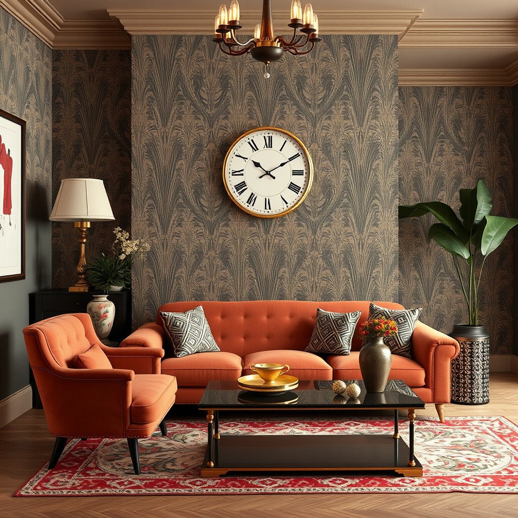 Art Deco is all about bold geometric patterns and rich colors. Think of zigzags, chevrons, and sunburst motifs. These designs can be easily incorporated through wallpaper, rugs, or even upholstery.