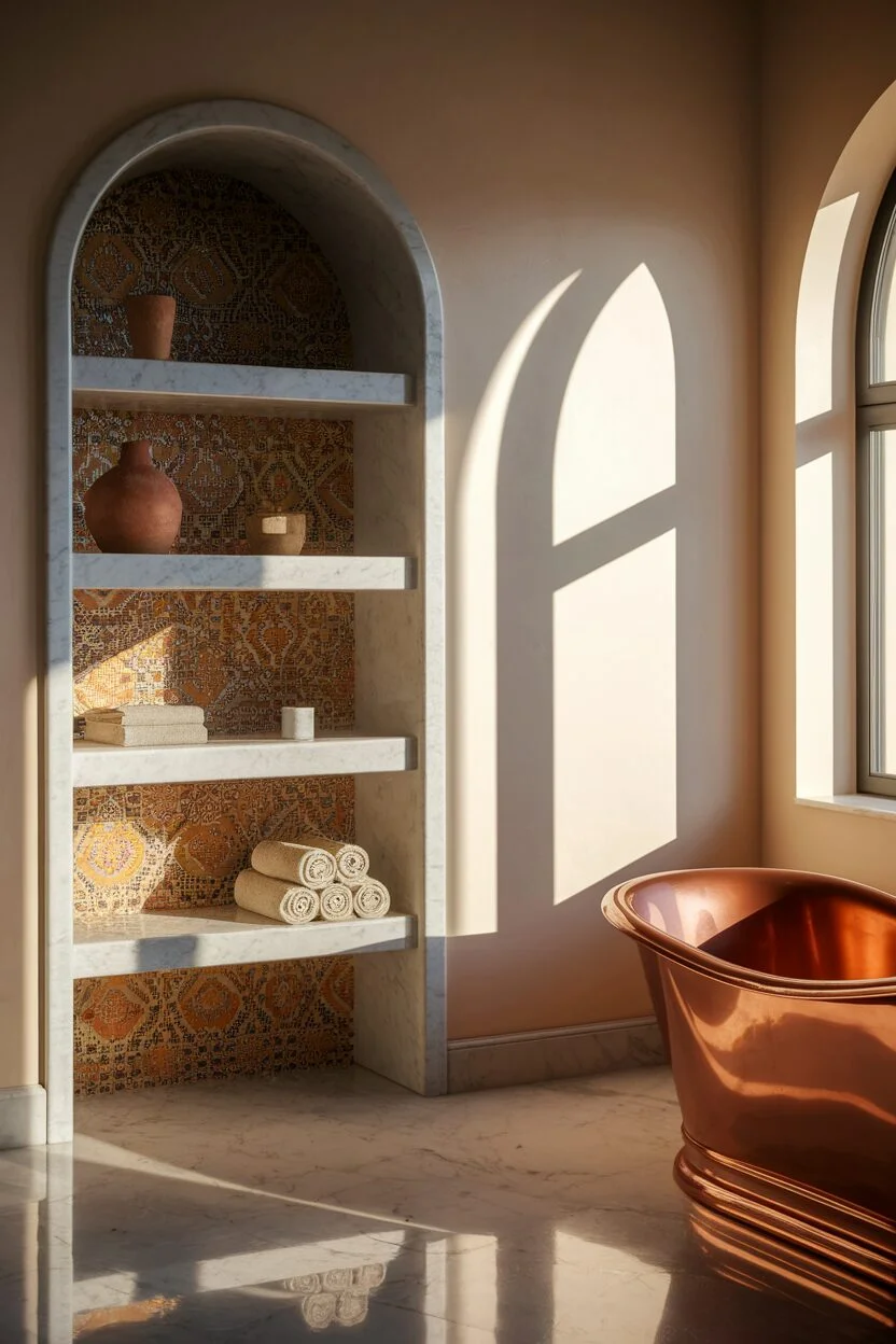 Using open shelves allows you to display pretty towels and accessories while keeping everything easily accessible. It’s a practical way to enhance your decor and keep clutter at bay.