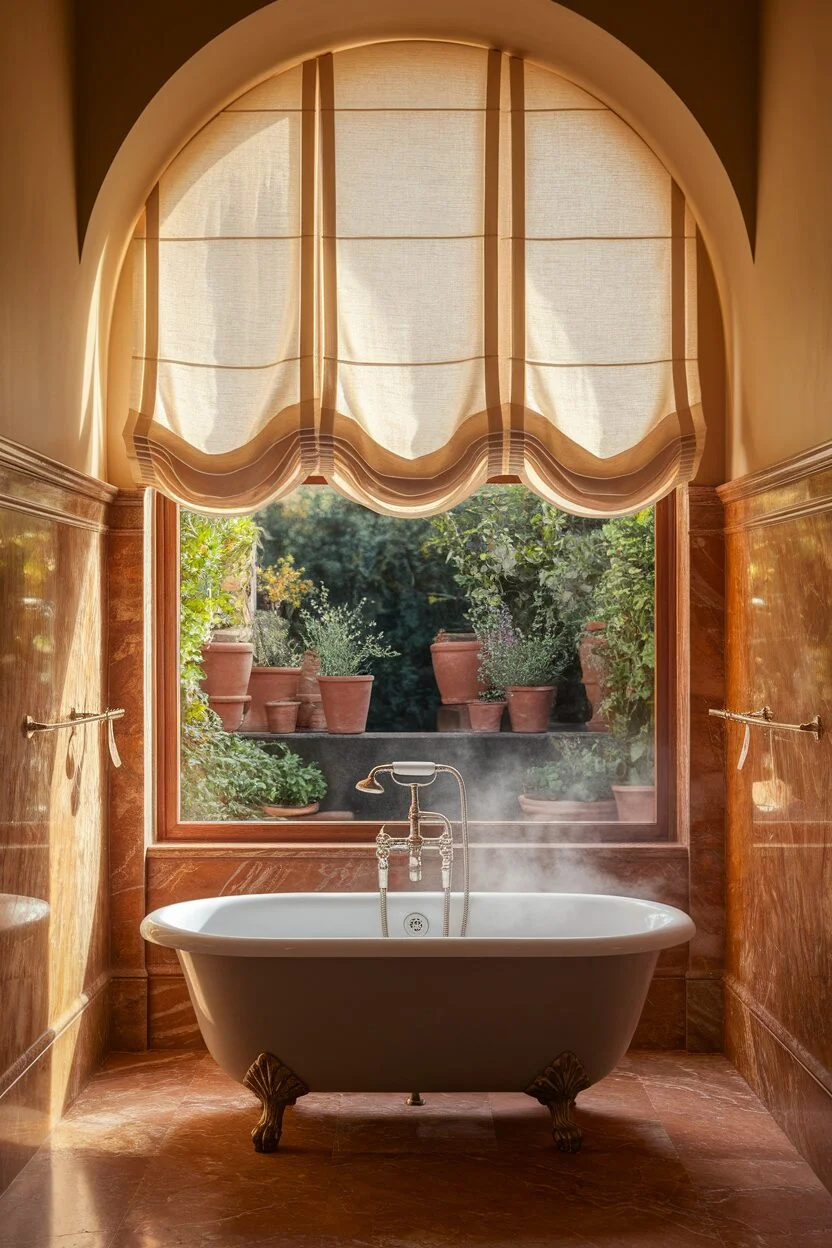 Roman shades bring a touch of softness and elegance to your bathroom windows. They come in various fabrics and colors, allowing you to customize the look to match your décor.