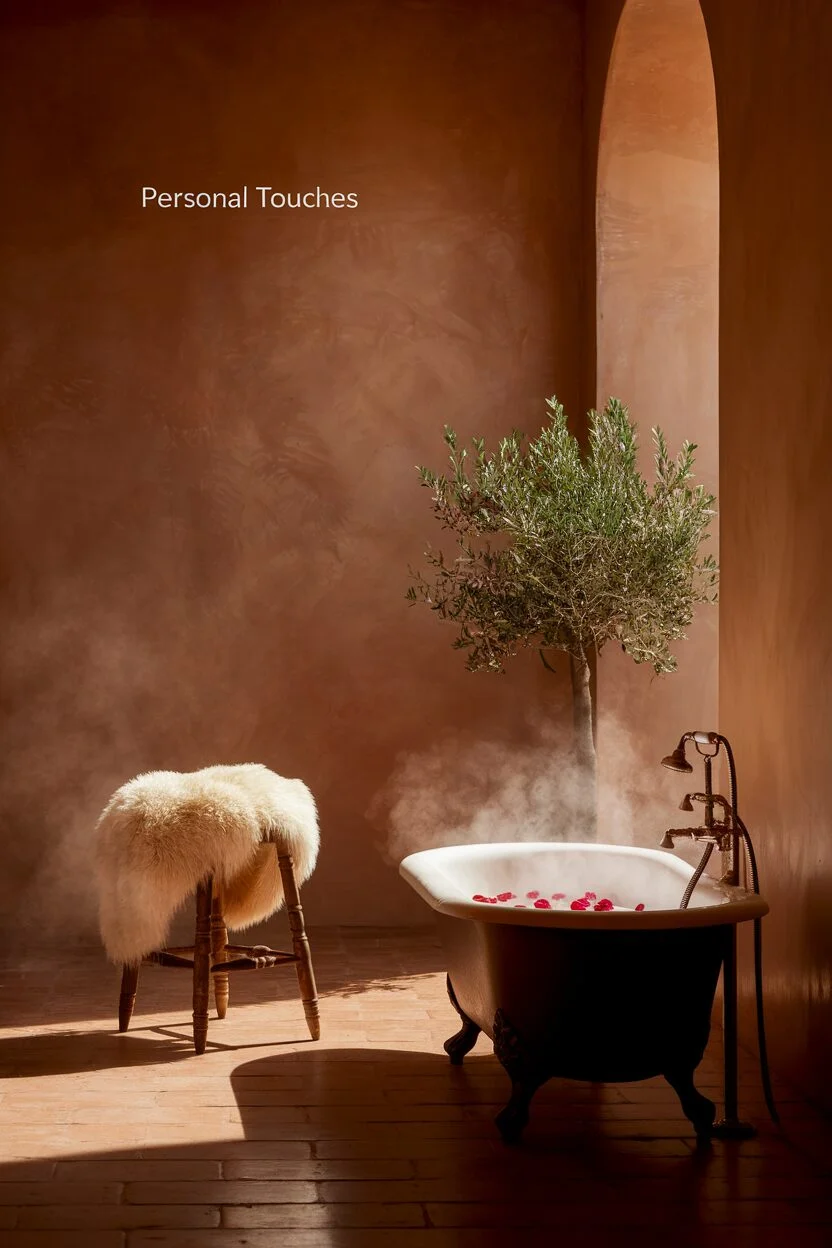 Accessorize with plush towels and candles around the tub for a cozy vibe. Adding a small side table for books or drinks can make bath time feel even more luxurious.