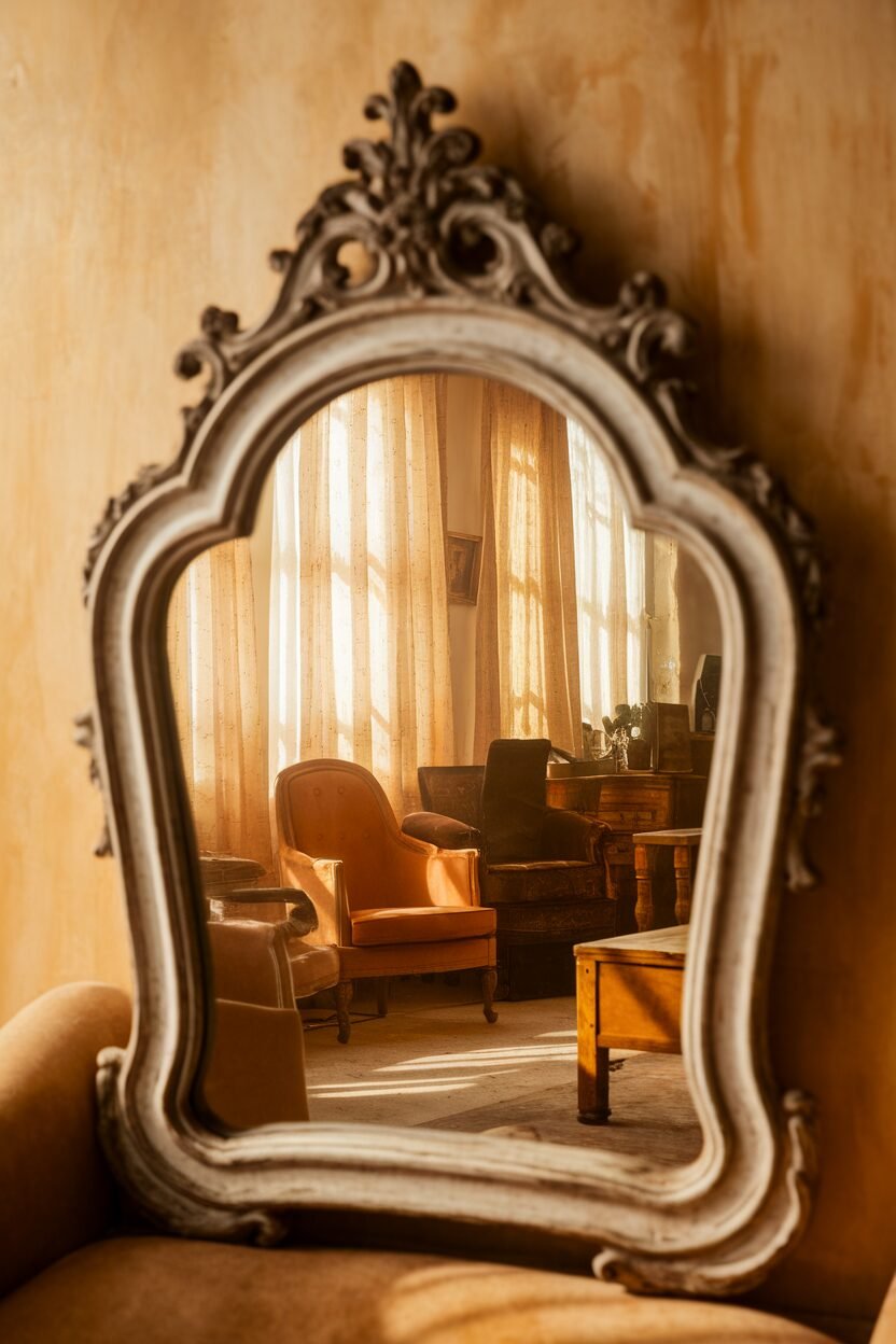 Hang vintage mirrors for a touch of old-world charm. They reflect light and make rooms feel bigger.
