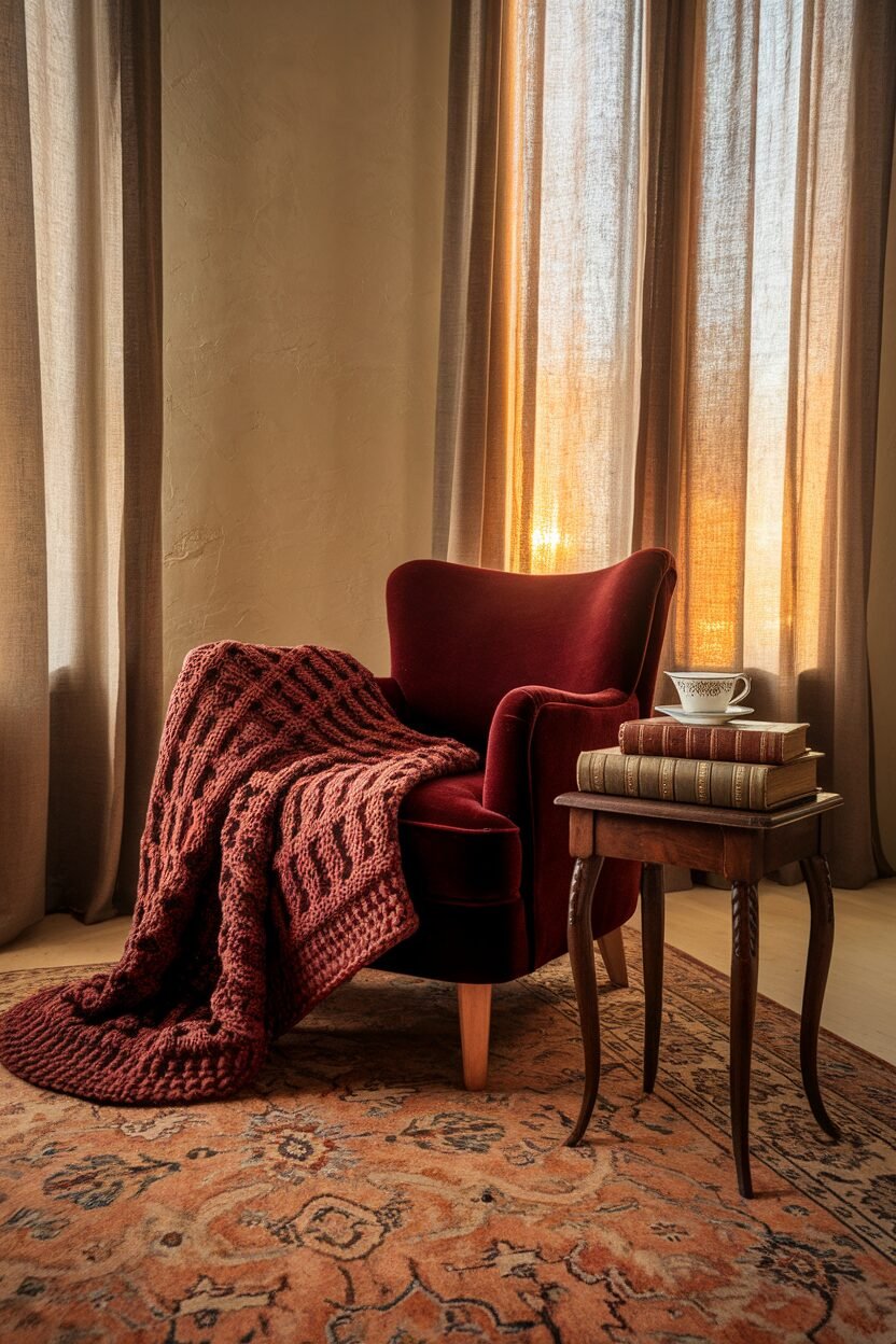 Choose a comfy chair and good lighting. Add shelves for books and a soft throw for warmth.