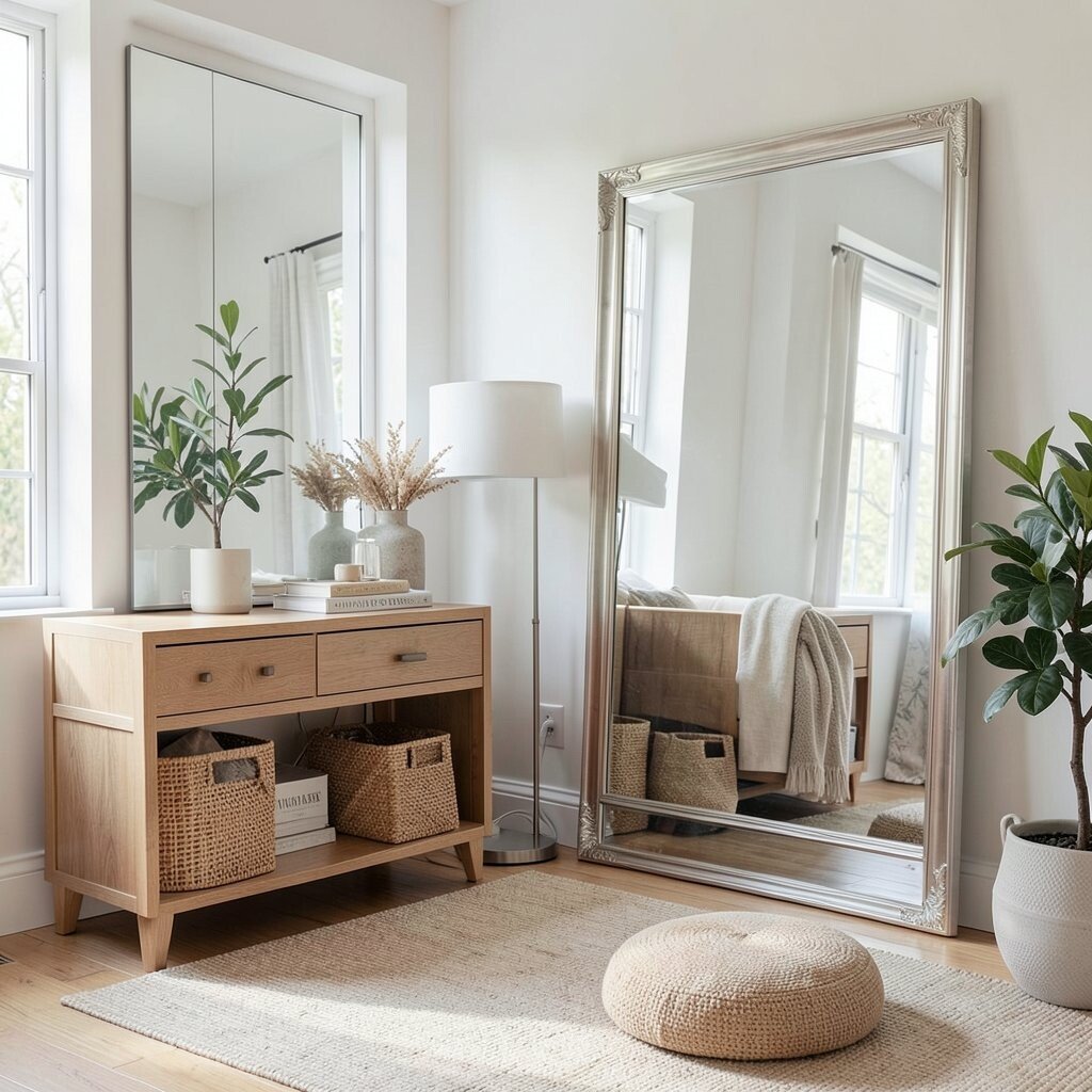 A big mirror can make a room feel open, airy, and much brighter. It bounces sunlight around and gives even a small space a fresh look.