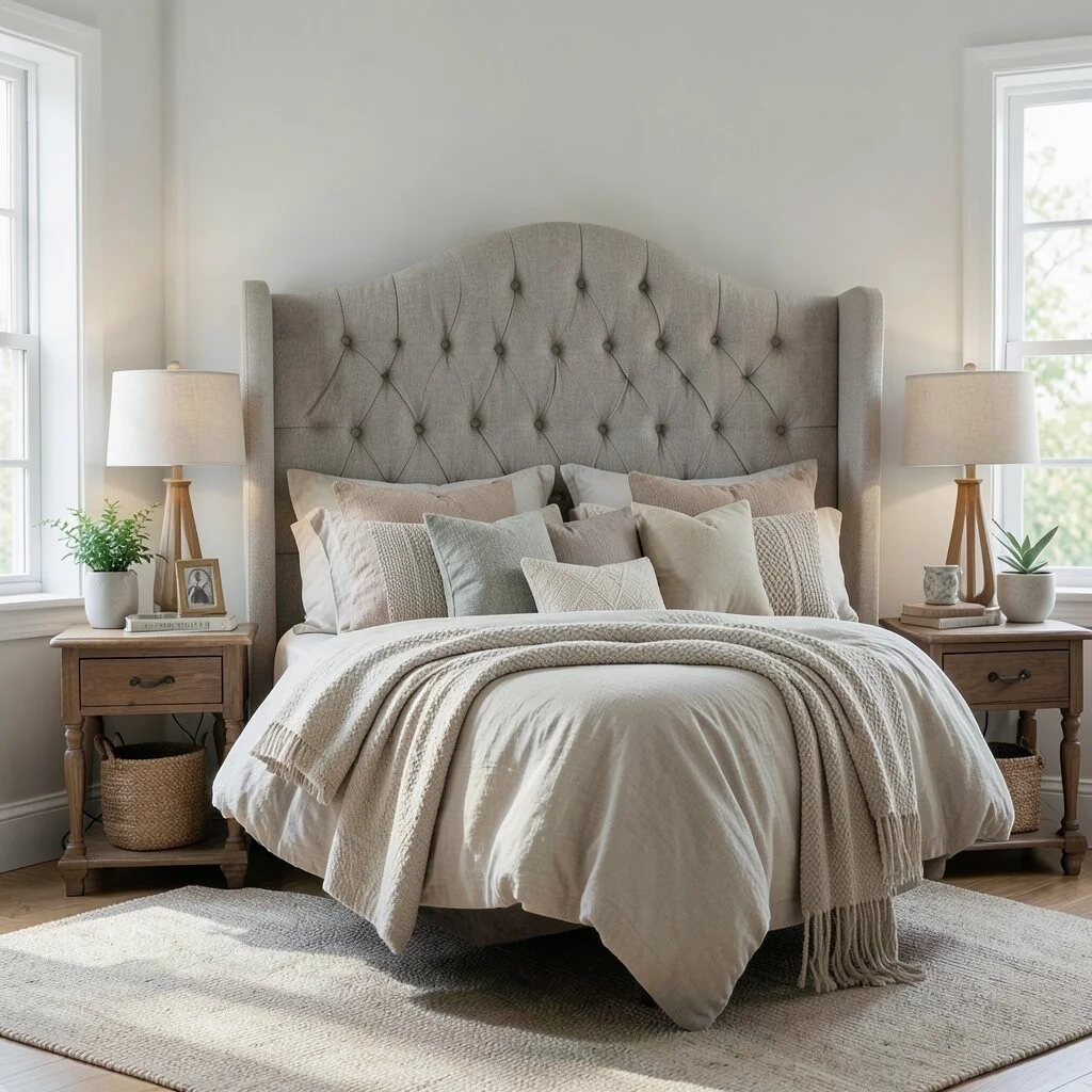Try colors and materials that match your bedding for a smooth look. If you want the room to feel cozy, pick soft fabric; if you want it to feel crisp, go with wood or metal.