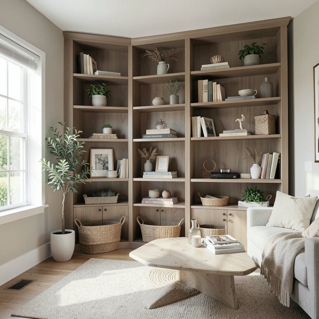 Open shelves can turn everyday items into part of the decor. They make a room feel open and useful at the same time.