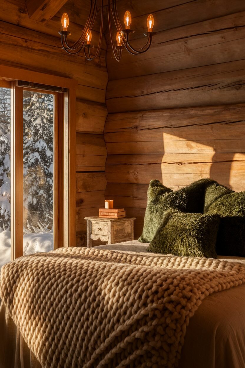 Turn your bedroom into a cozy cabin retreat. Use warm colors, wood accents, and soft textiles.