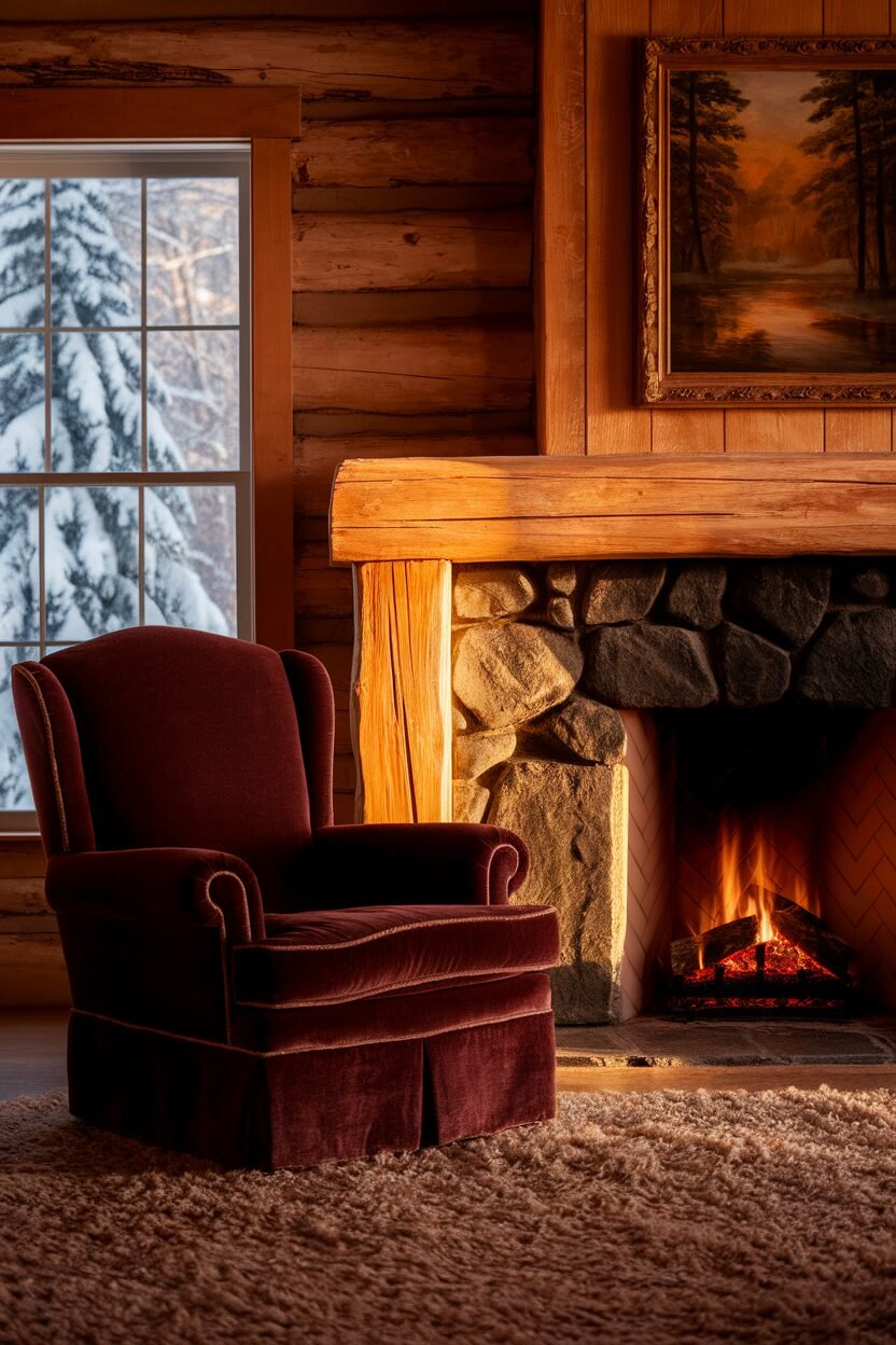 Bring the charm of a cabin into your living room with rustic decor. Use wood, stone, and cozy textiles.
