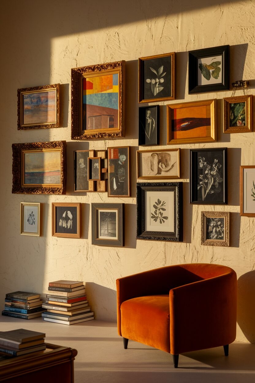 A gallery wall can transform any plain wall into a masterpiece. Use different frames and artwork for a dynamic look.