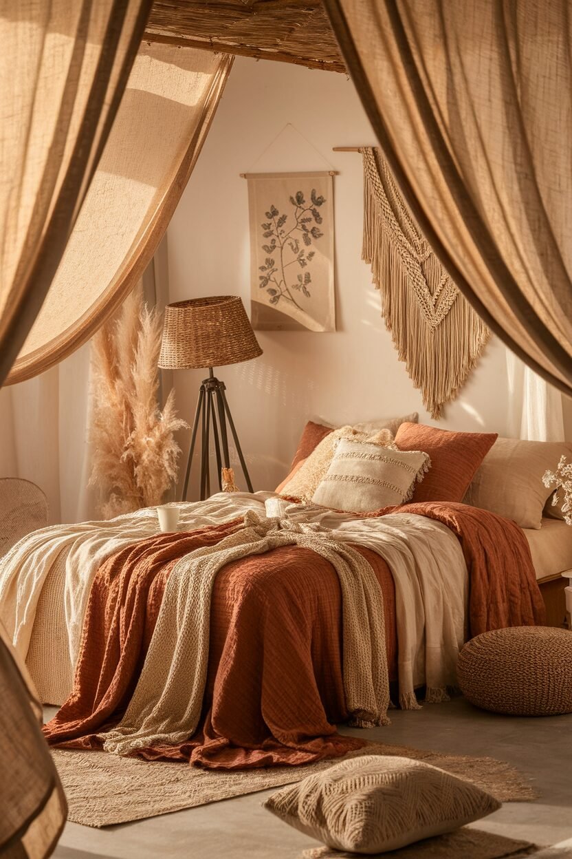 This style creates a relaxed, inviting bedroom. It’s perfect for expressing individuality and creativity.