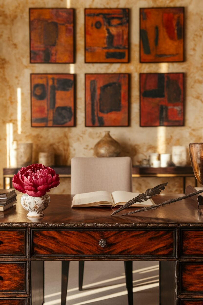 Turn your home office into an inspiring art space. Use creative decor and colorful accents for motivation.