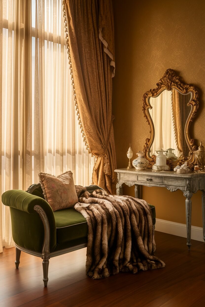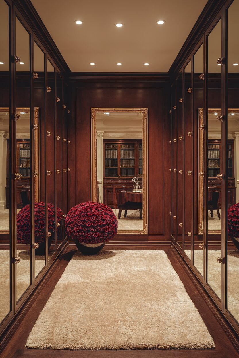 Create a glamorous dressing room with vintage touches. Use mirrors, chandeliers, and elegant decor.