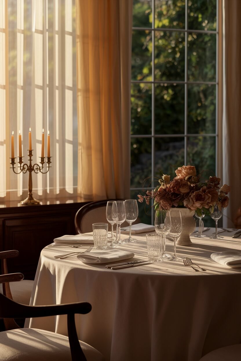 Choose elegant tableware and chic lighting. Costs can vary, but timeless pieces are a good investment.