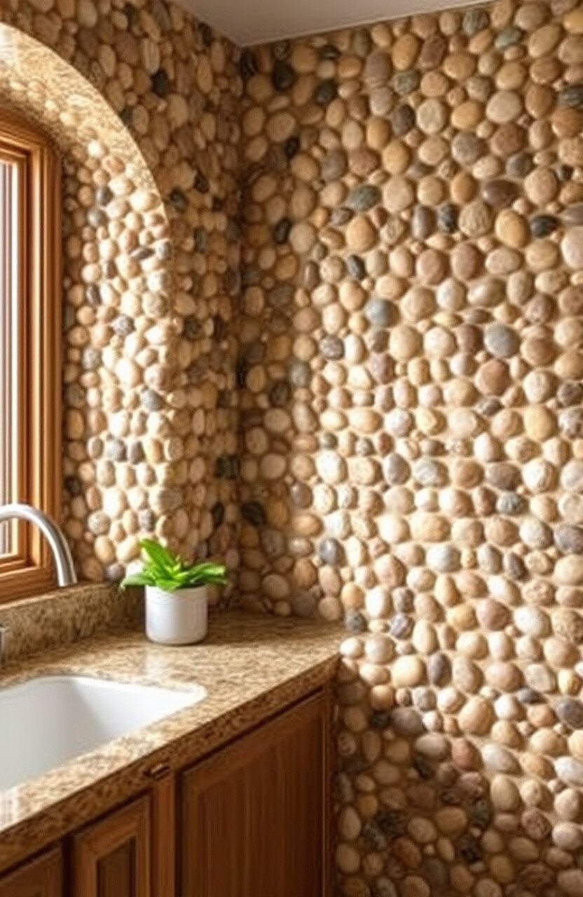 This idea stands out for its earthy, spa-like feel. It’s like bringing a riverbed into your kitchen.
