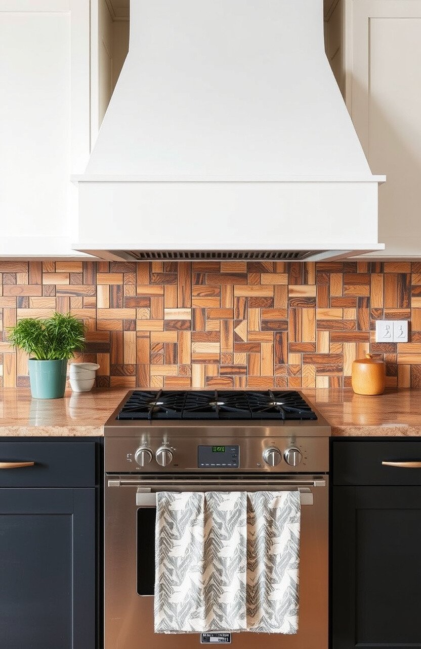 Using reclaimed wood planks for your backsplash offers a sense of history and character. Each piece tells its own story with knots and grains.
