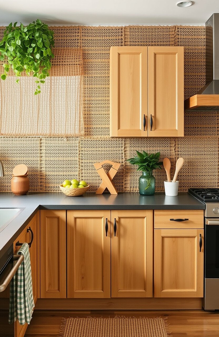 Burlap panels bring a unique, rustic texture to your backsplash. Their woven pattern adds warmth.