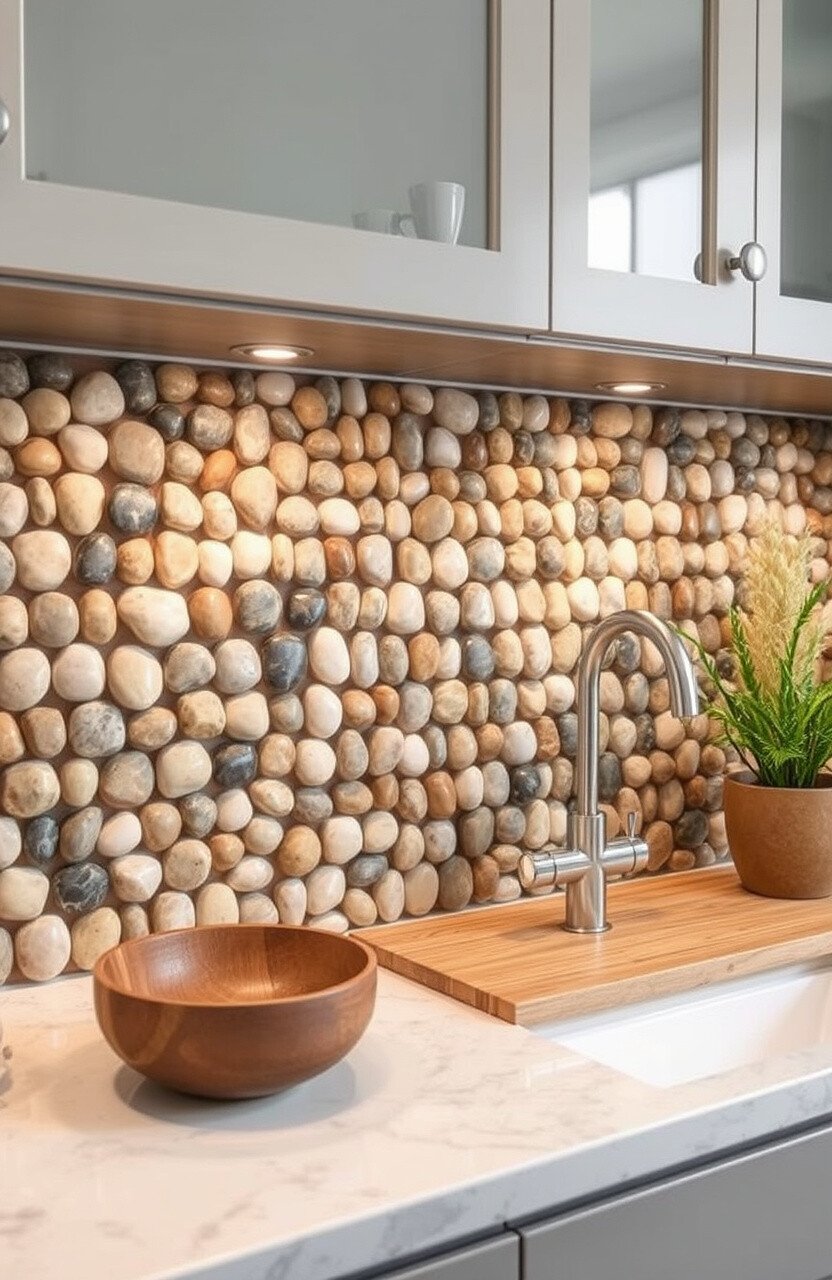 Stone pebbles bring a natural, earthy feel to your kitchen. Their round shapes add texture.