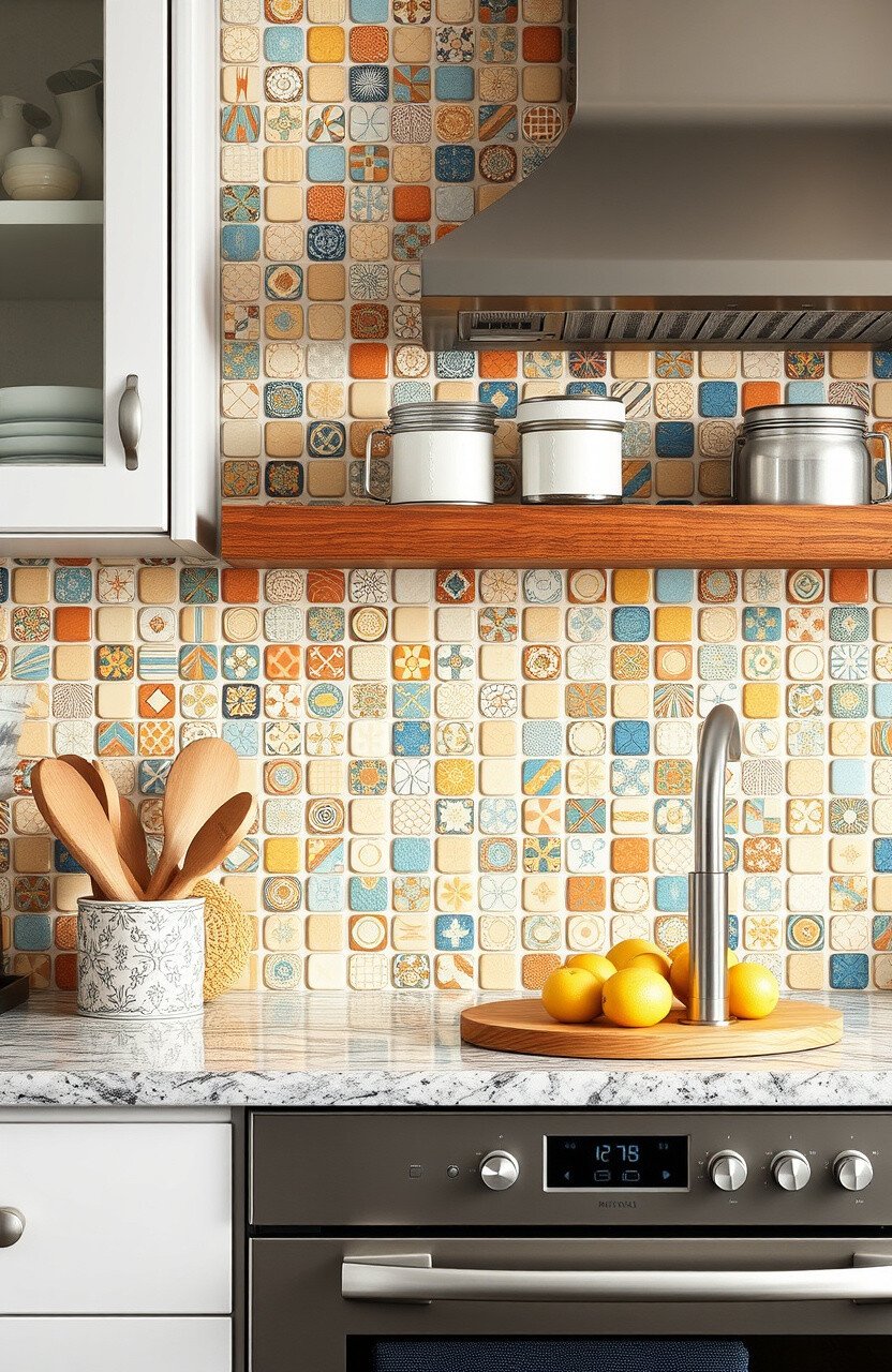 Ceramic mosaic tiles bring a colorful, artistic touch to your kitchen. Their varied patterns create interest.