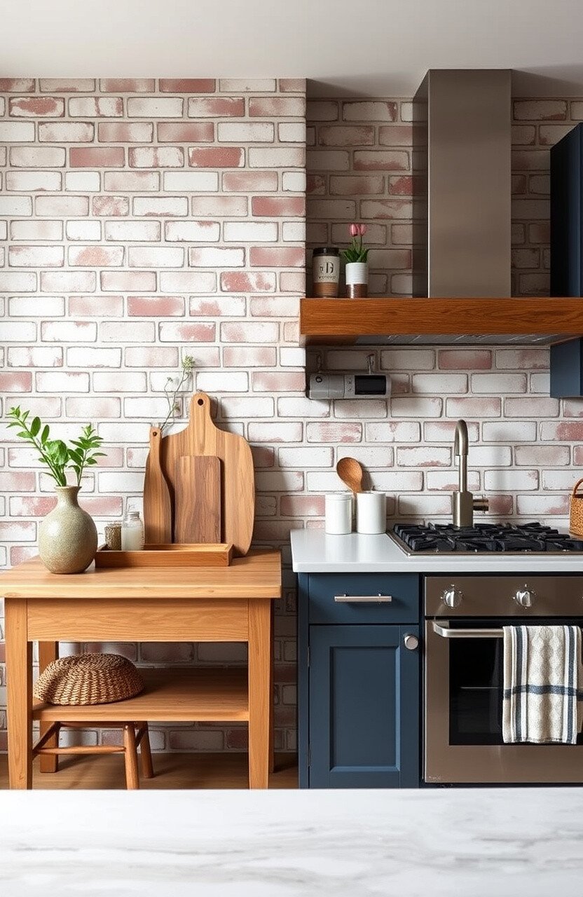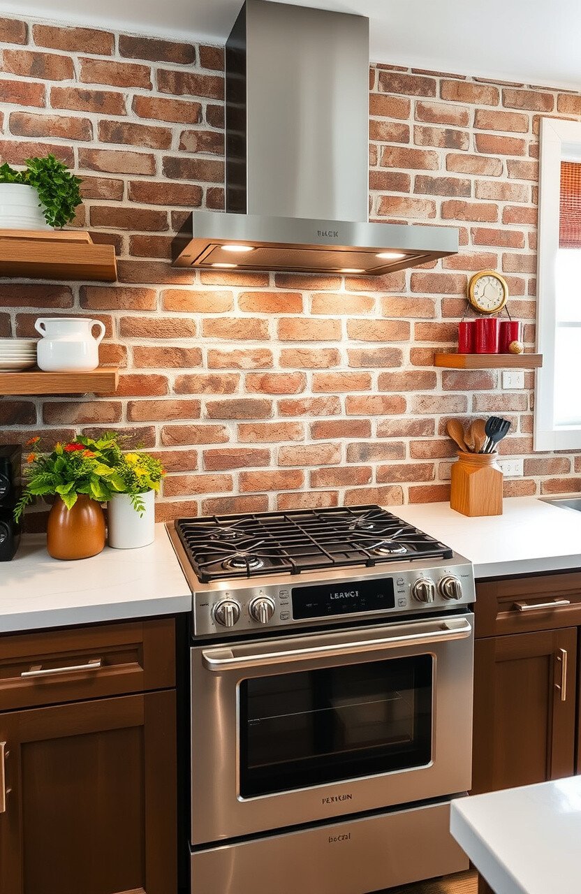 Seal the bricks to prevent moisture absorption. Pair with stainless steel appliances for a modern edge.