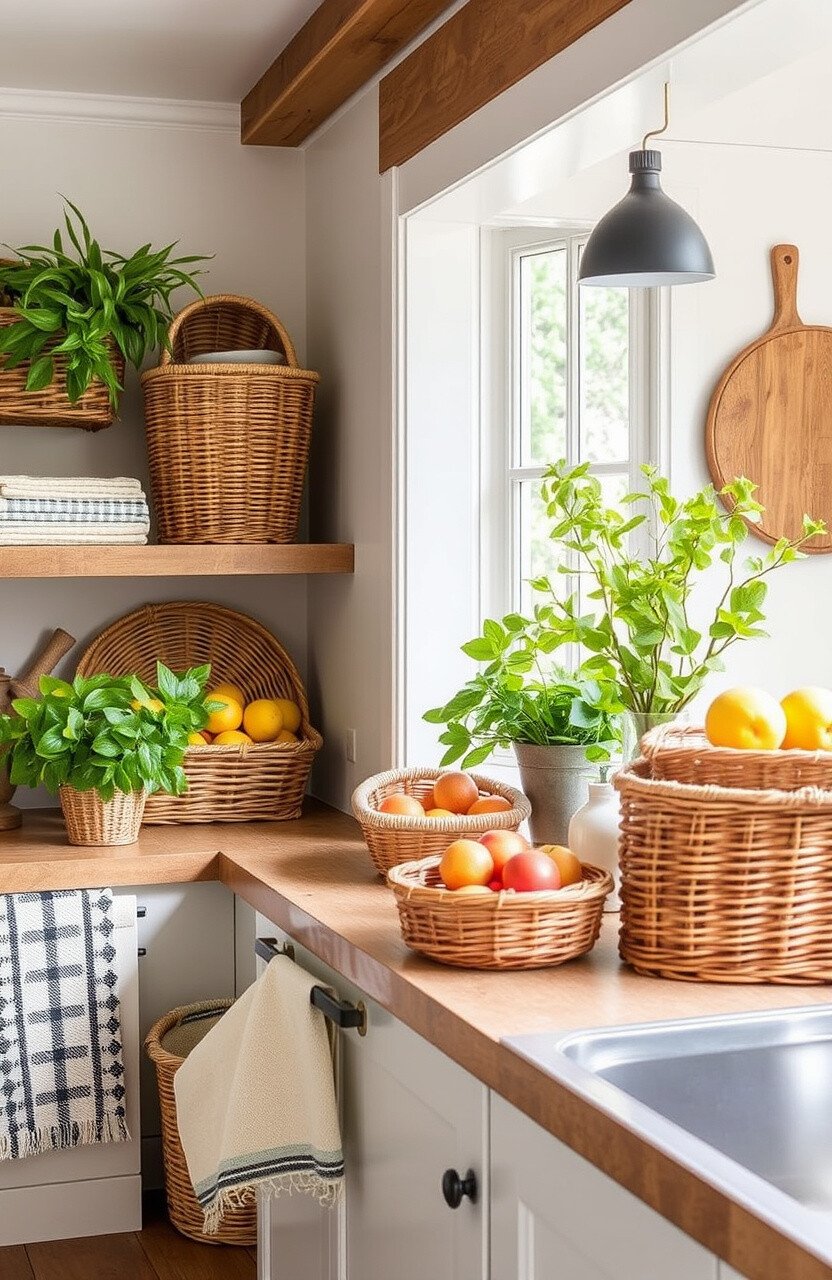Use them to hold fruits, linens, or pantry items. They’re trendy and practical.