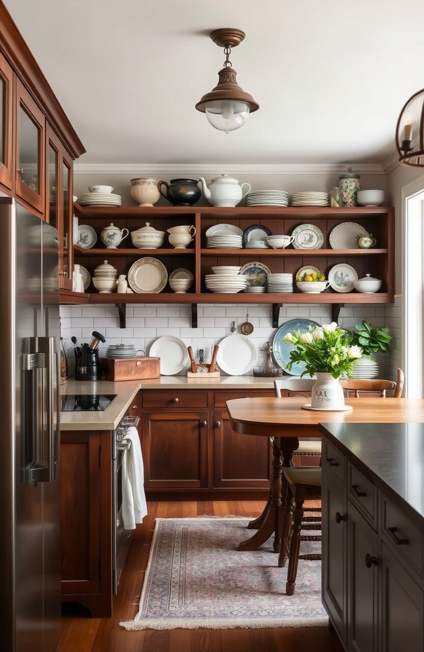 Displaying antique dishware adds elegance and history. It’s perfect for showcasing family heirlooms.