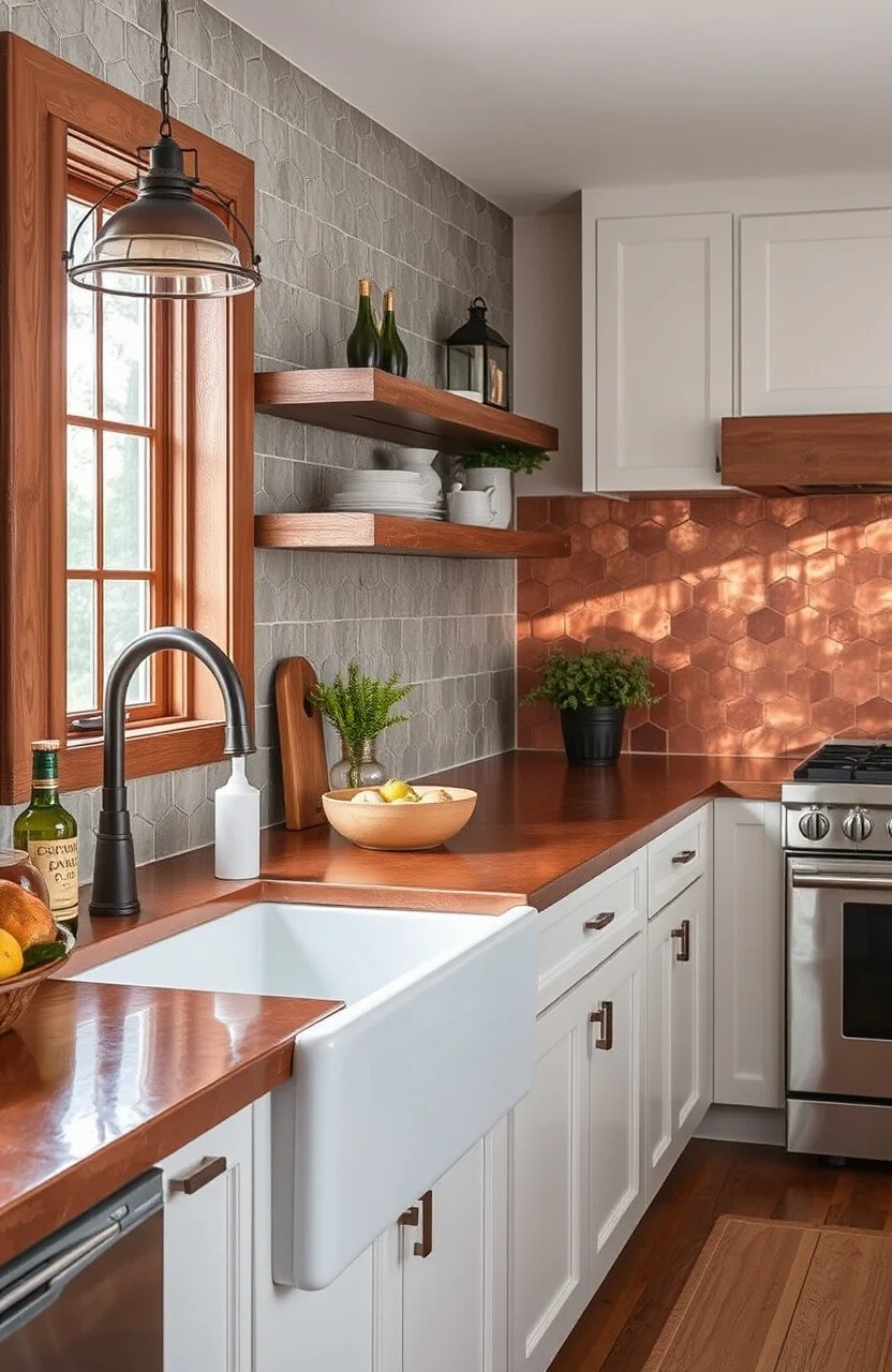 Rustic copper countertops are known for their warm, reddish-brown hue that changes over time. They add a unique, artistic touch to your kitchen.