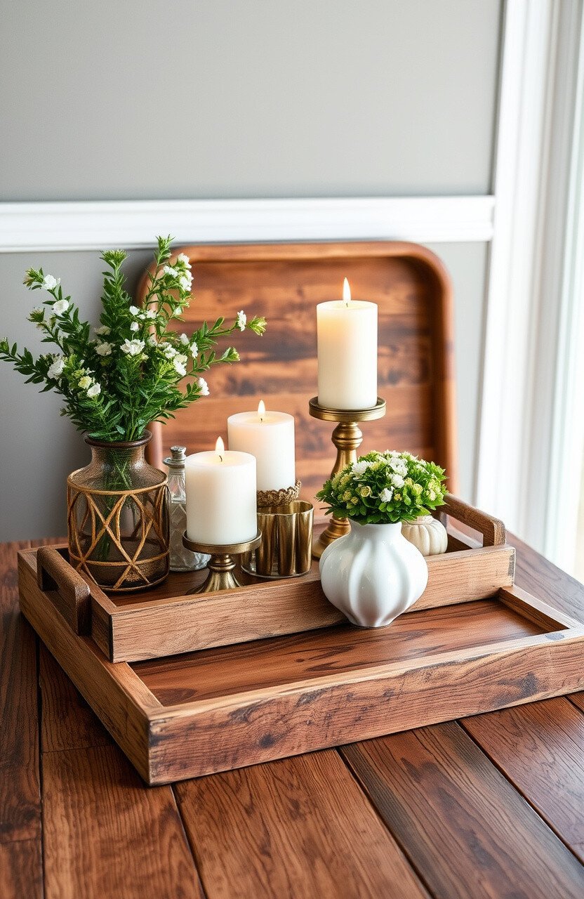 Choose from vintage or new designs. Wooden trays are affordable and easy to find. They are versatile and can be used in any room. Use them to display candles, plants, or collectibles.