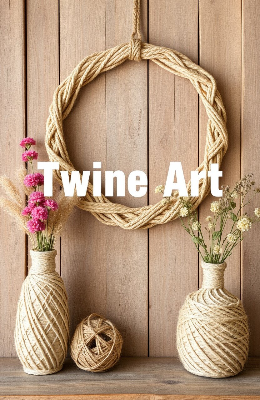 Twine art is a fun and creative way to decorate. It’s perfect for adding a rustic touch to your space. Use it to create wall hangings, wreaths, or wrapped vases.