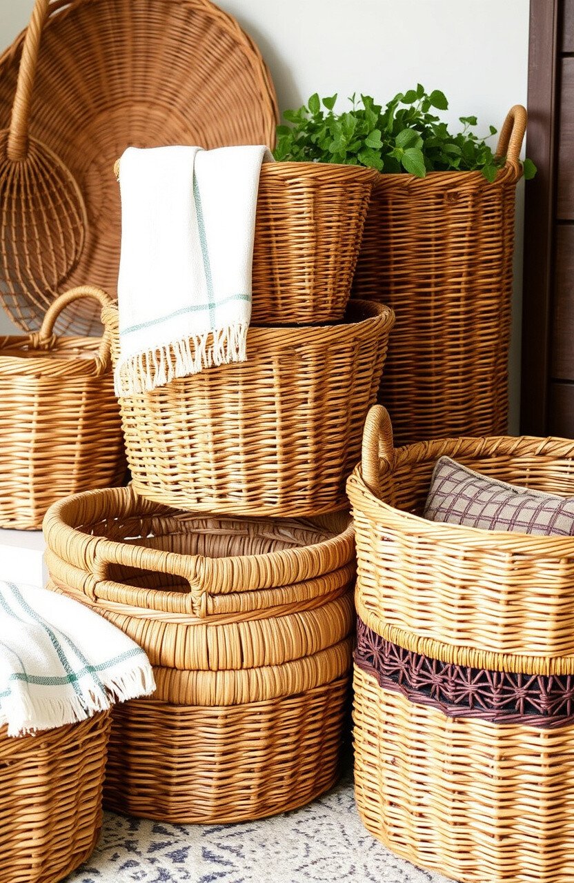 Choose natural tones for a classic look or paint them for a pop of color. Wicker baskets are affordable and versatile. Stack them for a layered effect. They bring a touch of nature indoors.