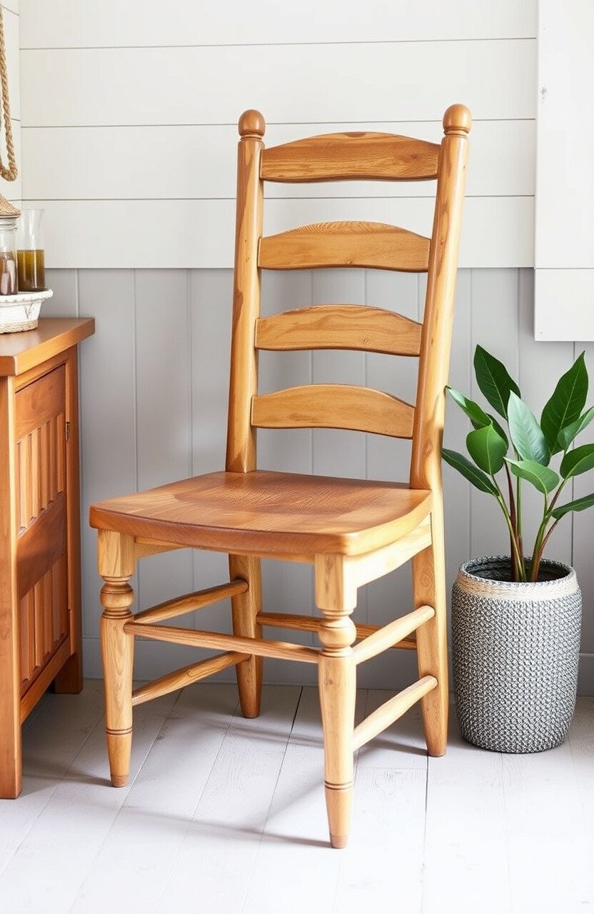 A wooden ladder back chair adds rustic elegance. It’s perfect for your breakfast nook.