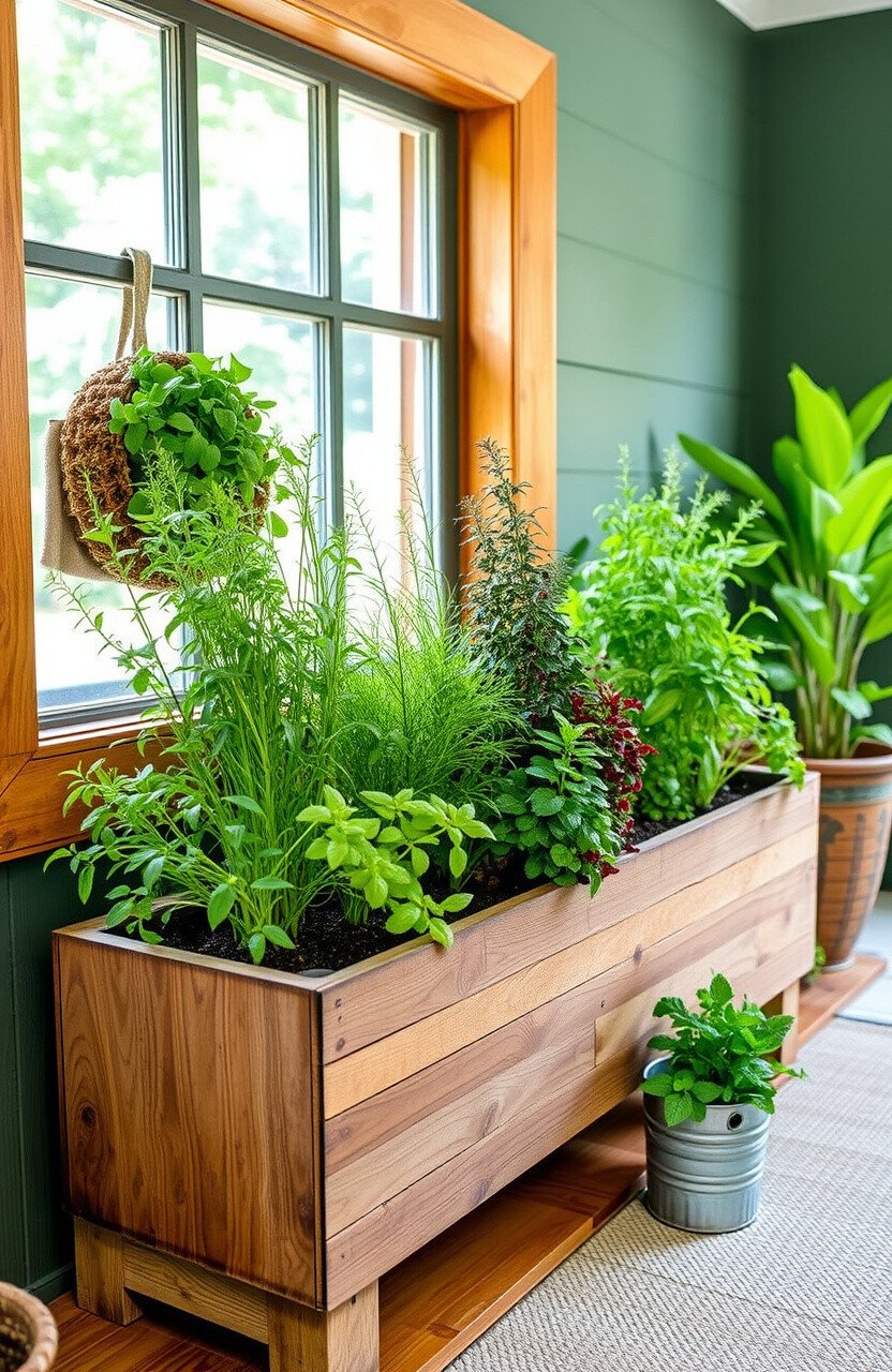 An herb garden planter brings greenery and flavor. It’s a functional and beautiful addition.